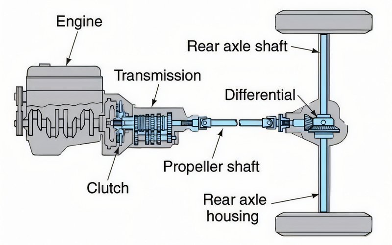 The drive shaft in the rear wheels layout is a single, long shaft that rotates and transmits power to the rear axle. Meanwhile, the half shaft or drive axle transmits power from the transmission to the front wheels in front-wheel drive cars.